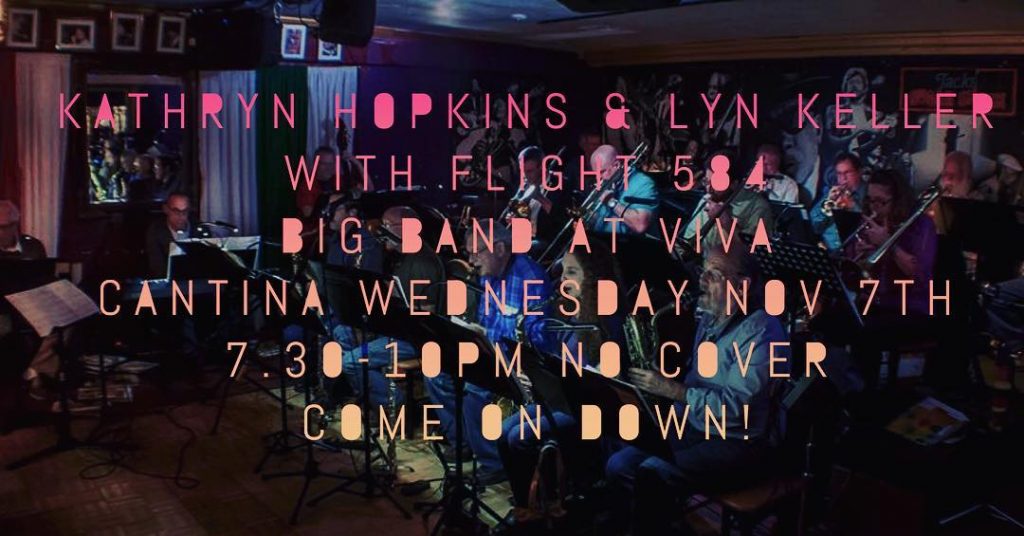 11/01/2018 Nov 7 at Viva Cantina Riverside Drive, Burbank, Los Angeles Downbeat 7.3opm The usual suspects that make up this tight 18 piece big band. Singing with my girl Lynn Keller Baygan. No Cover! Great Margaritas. Tweet